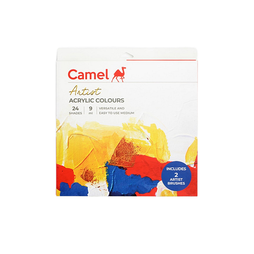 Camel Artists’ Acrylic Colours are soft, creamy and are a golden mean between water colours and oil colours. They can be used directly from the tube or mixed with acrylic medium or with water. Relief texture can be obtained by application of thick paint with palette knife and large areas can be built up without fear of cracking. They adhere to a great variety of surface like canvas, wood and earthenware. They are available in 60 shades.