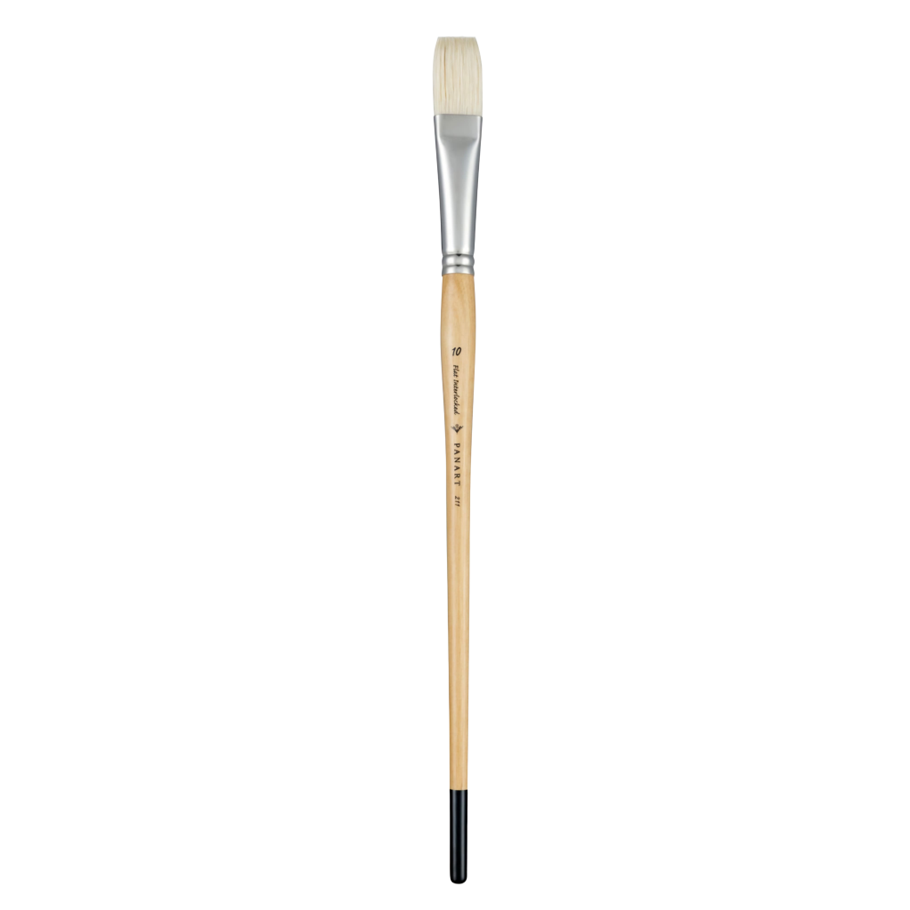 These PANART precision-shaped brushes are made from the finest handpicked bleached white hog bristles and are considered the workhorse for artists using oil paint.